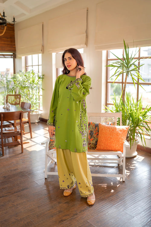 moos green 2Pc -Embroidered Casual